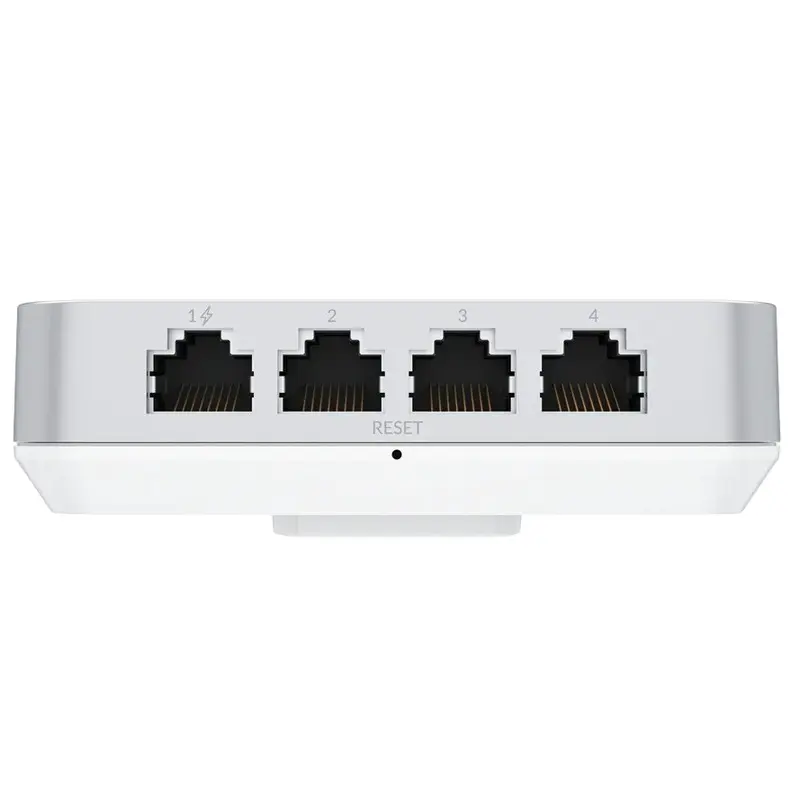 Настінна точка доступу WiFi 6 із вбудованим комутатором PoE. Особливості: Підтримка WiFi 6 (діапазони 2,4/5 ГГц) Сукупна пропускна здатність 5,3 Гбіт/с (1) порт GbE RJ45 (вхід PoE) (4) порти GbE RJ45, включаючи один, який підтримує вихід PoE*