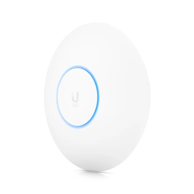 Точка доступу Unifi 6 LR підтримує стандарт Wi-Fi 6. Пристрій розроблений компанією Ubiquiti і його характеристики суттєво відрізняються підвищеною продуктивністю. На базі U6-LR Ви зможете розгорнути надійний Wi-Fi Hot-спот для великої кількості клієнтських пристроїв, що підключаються до мережі. Точка доступу Unifi 6 LR обладнана ефективним для роботи радіомодулем, який працює за схемою MIMO 2X2. Роздача сигналу відбувається у 2 діапазонах 2.4 та 5 ГГц. Сумарна швидкість U6-LR із двох діапазонів досягає 2.7 Гбіт/с. Так на діапазон 2.4 ГГц припадає 300 Мбіт/с, а решта 2400 Мбіт/с в діапазоні 5 ГГц. За дизайном точка доступу відповідає серії Unifi. Виробник передбачив монтаж строго на стелю. Корпус Unifi 6 LR у вигляді диска з підсвічуванням бані. Колір підсвічування залежить від стану підключення. Точки доступу U6-LR дуже компактні і мають лише по одному Ethernet порту. З його допомогою відбувається підключення до мережі. Для запитування використовується технологія 802.3 AF PoE, тобто живлення надходить безпосередньо LAN кабелем. Рівень потужності достатньо для роботи радіомодуля на всю закладену силу. Управління та налаштування UniFi 6 реалізується за допомогою програмного комплексу UniFi Controller. У ньому відбувається керування потужністю, встановлення ширини каналу, використовувати чи ні шифрування, можна ввімкнути SSID та керувати величезною кількістю інших параметрів.