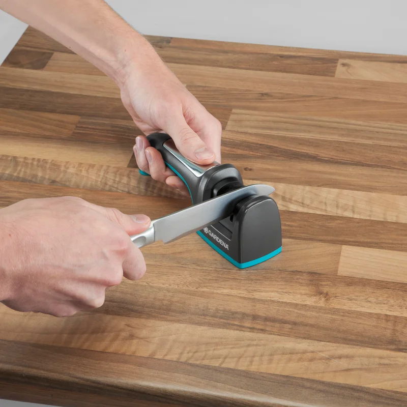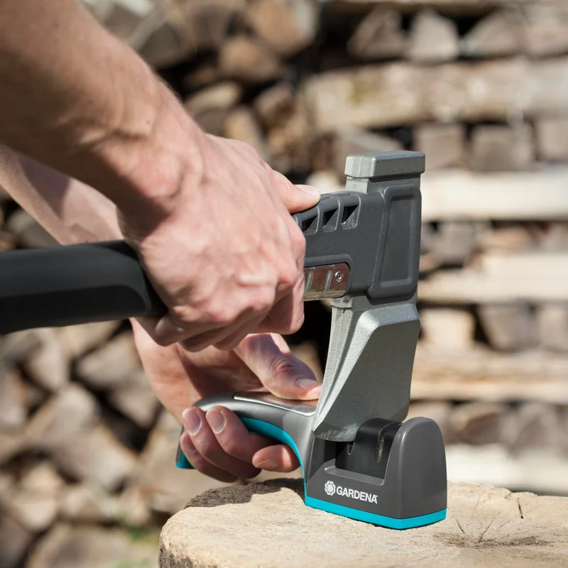 Точилка для сокир і ножів Gardena Diamond ErgoTec - незамінний помічник для всіх власників сокир та ножів GARDENA. Для постійної роботи з деревиною потрібно підтримувати відмінний рівень заточування інструментів. Якщо ви рубаєте багато дерева, це лише питання часу, коли лезо вашої сокири затупиться і працювати з ним стане важко. Регулярне заточення за допомогою точилки для сокир і ножів Gardena Diamond ErgoTec допоможе підтримувати леза вашого інструменту у чудовому стані. Ця зручна та компактна точилка має два отвори, кожен з яких забезпечує оптимальний кут заточування. Великий отвір використовується для заточування сокир, менший отвір - для заточування невеликих лез, в тому числі ножів. Процес заточування дуже простий та комфортний - вставте лезо у відповідний отвір точилки і приступайте до заточування. Всього 10-15 плавних рухів вперед та назад, - і ваше лезо знову набуде своєї первинної гостроти. Точилка Gardena Diamond ErgoTec має спеціальну ручку зі вставкою з м’якого пластику для комфортного утримання, а також прогумовану основу. Точильні диски з діамантовим покриттям встановлені в удароміцний корпус. Гарантія виробника складає 25 років.