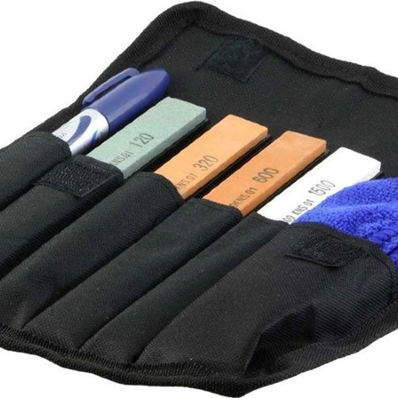 Всього з точилом використовується чотири бруска. Зернистість відображена числом на кожному з абразивних каменів. Більше число означає дрібну зернистість, менший, що зернистість крупніше і брусок більш грубий. Коли клинок занадто затуплений або потрібне переточування на інший кут – використовуємо спочатку брусок найбільшою зернистості (120 або 320 одиниць). Потім черга середньої грубості – бруски з позначенням "600". Завершуємо заточку найбільш делікатним – з написом "1500". Простій правці і постійній підтримці гостроти досить брусків з показниками 600 і 1500.
