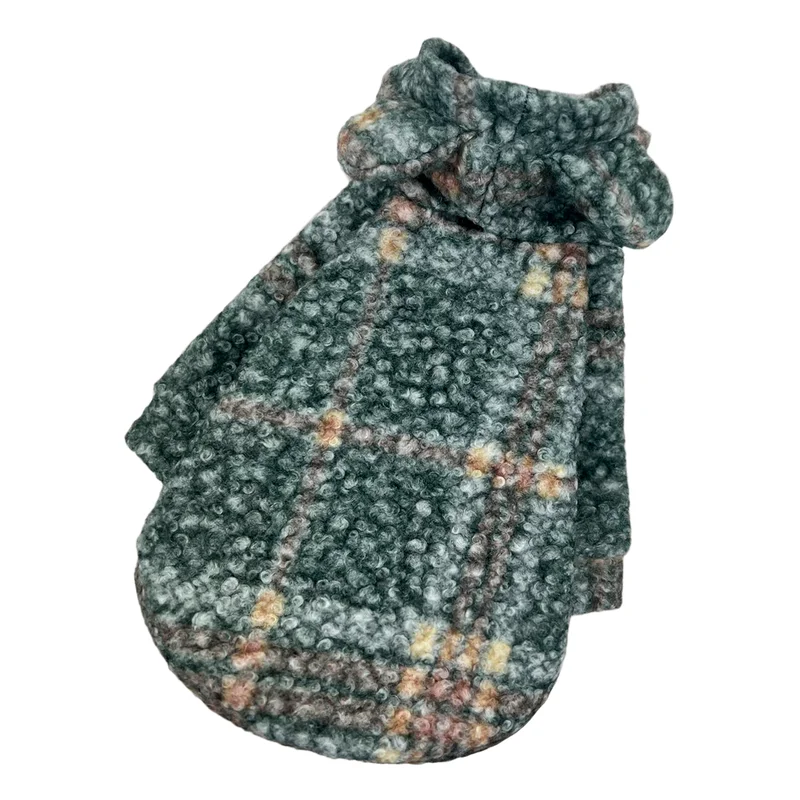 букле-шерсть баранчик (60% вовна, 40% поліестер) всередині м'яка, флісова застібається блискавкою на животі є отвір для повідця на шиї капюшон з вушками модель унісекс