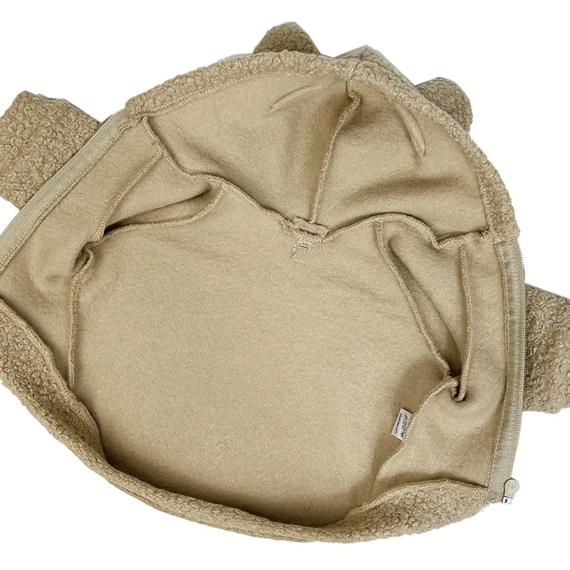 букле-шерсть баранчик (60% вовна, 40% поліестер) всередині м'яка, флісова застібається блискавкою на животі є отвір для повідця на шиї капюшон з вушками модель унісекс