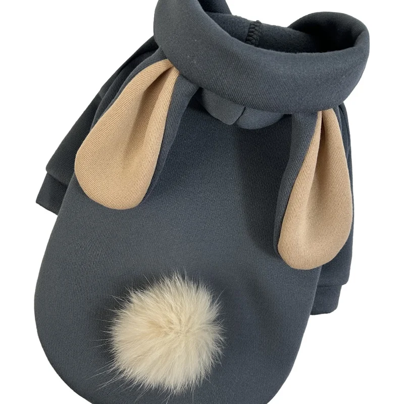 тканина трьохнитка з начосом на капюшоні вушка, знизу толстовки помпон з хутра кролика застібається кнопками на животі модель унісекс