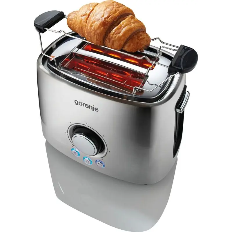 Він має все необхідне для простої комфортної експлуатації і ефективної роботи. Gorenje T1000E виконаний з використанням якісних матеріалів і сучасних технологій, що дозволило забезпечити корпусу що не нагрівається і високу продуктивність, при потужності в 1000 Вт. У даній моделі передбачено два відділення, що дозволяють готувати відразу два сендвіча або тости, при цьому є можливість вибору з 7 ступенів обсмажування, використовувати функцію підігріву і розморожування, а також переривання приготування в разі потреби. Є в Gorenje T1000E також високий підйом тостів і решітка для підігріву булочок, а знімний піддон для крихт значно спростить догляд за ним.