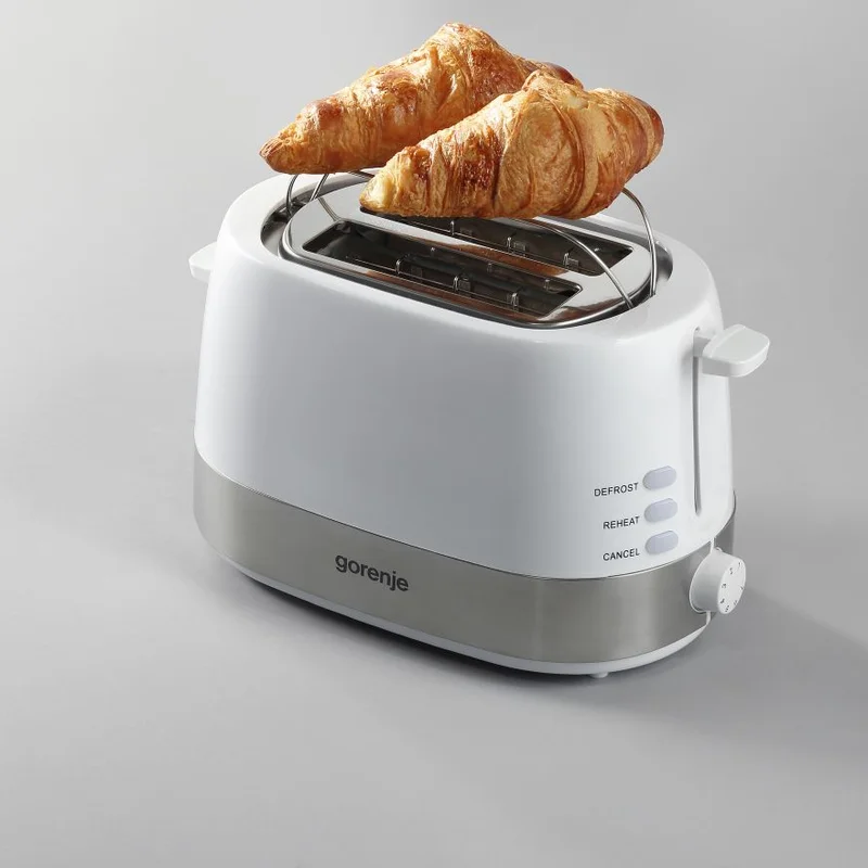 Ви із задоволенням поставите тостер Gorenje на кухонний стіл. Легкий і зручний, він підкреслить інтер'єр кухні та ваш стиль. Розморозьте скибочки хліба з морозильної камери або підігрійте вже готовий тост, щоб легше намазати вершкове масло. Секрет ідеального тосту полягає в чистому тостері. Щоб уникнути горілого запаху, регулярно очищайте піддон від крихт, і на кухні пахнутиме лише свіжими тостами.