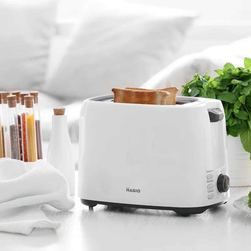 Тостер MG-278 максимально легко впишеться в інтер’єр кухні завдяки лаконічному білому кольору. Крім дизайнерського боку, він відмінно підрум’янить тости на сніданок, оскільки має потужність в 830 Вт. Завдяки режиму розморожування можна легко використовувати хліб, що зберігається в холодильнику, а 7 режимів підсмажування дозволяють самостійно контролювати ступінь підрум’янювання тостів. Вам не доведеться контролювати приготування, оскільки в пристрої є автоматичний викид хліба, а з піддоном для крихт кухня завжди залишиться чистою та охайною.