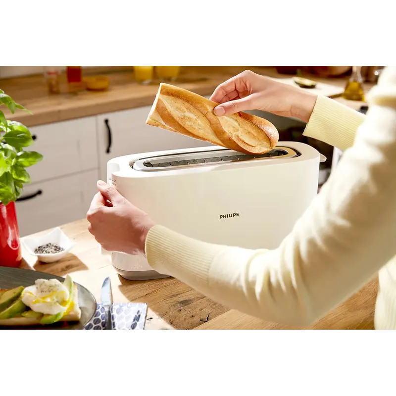 Тостер із довгим слотом і 8 налаштуваннями для рівномірного підсмажування до золотисто-коричневого кольору – незалежно від того, що саме ви підсмажуєте чи що вам подобається. Вбудована решітка для розігрівання булочок підходить для будь-чого – від булочок до круасанів. Особливості: - Один довгий слот підходить практично для будь-якого виду хліба, який ви обираєте. - Налаштовуйте час підсмажування будь-якого хліба відповідно до своїх уподобань. - Режим розморожування дозволяє легко підсмажити заморожений хліб за один раз одним натисненням кнопки. - Вбудована решітка призначена для підігрівання випічки, булочок, круасанів тощо. - З функцією High-lift дрібні предмети розташовуються на висоті, завдяки чому їх легко й зручно діставати. - Завдяки знімному лотку для крихт легко зберігати прилад у чистоті та порядку. - Режим розігрівання дозволяє підігріти попередньо підсмажений хліб за лічені секунди одним натиснення кнопки. - Кнопка скасування припиняє приготування тостів у будь-який час для безпечної та точної роботи. - Автоматичне вимкнення в разі застрягання хліба захищає прилад від коротких замикань.