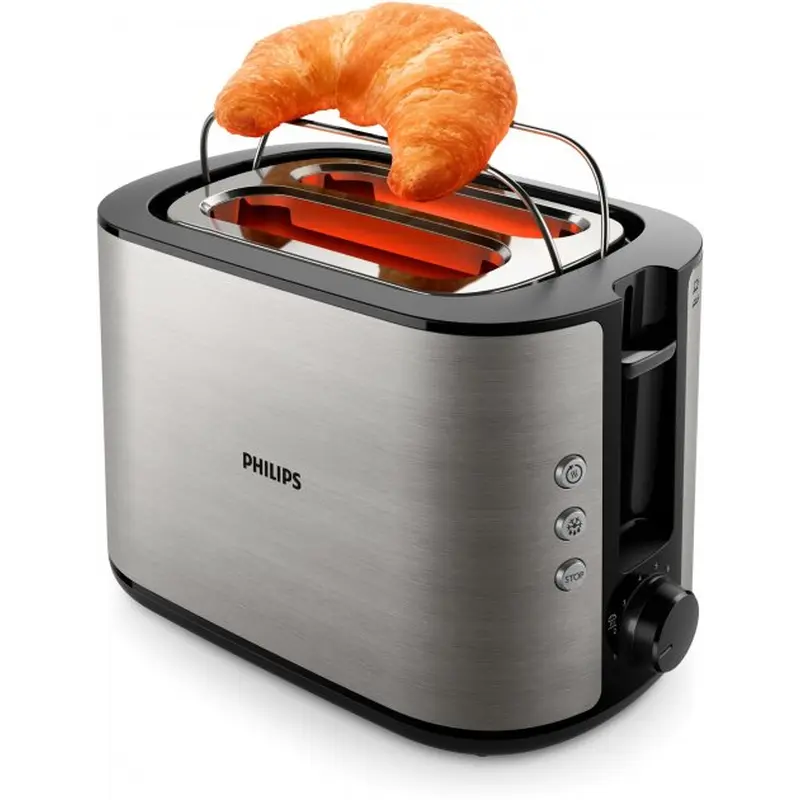 Знімний піддон для крихт для зручності чищення Просте очищення завдяки знімному піддону для крихт. Підставка для підігріву булочок і круасанів Підйомник дозволяє безпечно діставати невеликі скибочки Функція дозволяє підняти невеликі шматочки хліба, які не обпалюючись. Додаткова функція автоматичного вимкнення при заминанні хліба Автовимкнення для додаткового захисту приладу від короткого замикання. 8 режимів підсмажування на будь-який смак Регулюйте час підсмажування для будь-якого хліба на свій смак. Режим розморожування У режимі розморожування прилад легко підсмажує заморожений хліб одним дотиком кнопки. Широкий отвір легко вміщує товсті та тонкі, свіжі та заморожені скибочки Механізм автоматичного центрування ідеально розташовує кожну скибочку для рівномірного обсмажування незалежно від його товщини. Режим підігріву У режимі підігріву тостер розігріє вже підсмажений хліб за кілька секунд після натискання кнопки. Кнопка скасування дозволяє в будь-який момент зупинити приготування тостів