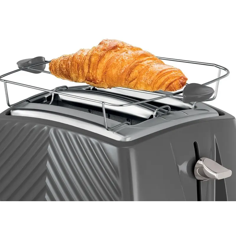 Будьте попереду останніх домашніх тенденцій із тостером Russell Hobbs Grey із 2 скибочками Groove. Він поєднує такі дизайнерські характеристики, як текстурований пластик з акцентами з нержавіючої сталі, і всі технічні особливості, які полегшують життя. Наприклад, циферблат підрум’янювання з 6 налаштуваннями відтінків позбавить вас від підсмажування. Більш широкі слоти означають, що ви можете підсмажити товсті скибочки, а функції замороженого, розігрівання та скасування надають вам контроль. Холодне блакитне світло повідомляє, коли прилад увімкнено, а зручна функція високого підйому дозволяє безпечно діставати скибочки гарячих тостів одним натисканням кнопки. Крім того, є підігрівач булочок, щоб ваша випічка була теплою. З таким стилем на вашій стільниці ви будете раді лотку для крихт, який також підтримує порядок на робочих поверхнях. Функція підйому Піднімає хліб для безпечного вилучення скибок хліба. Функція зупинки, розморожування та підігріву Поспішаючи Ви можете підсмажити хліб прямо з морозильної камери. Завдяки функції зупинки ви тримаєте все під контролем, а завдяки функції підігріву ви можете швидко розігріти тости, коли вони охолонуть.