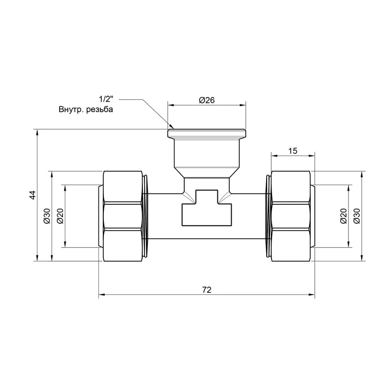 Трійник обтискний SD Plus 20х1/2"х20 ВР SD159W201520 — Т-подібний фітинг, що дозволяє виконати відгалуження металопластикового трубопроводу з переходом на різьбове з'єднання під кутом 90 градусів (внутрішня різьба, розмір 1/2 дюйма). Виріб буде потрібен при приєднанні ділянки з металевих труб, елементів інженерних систем з нарізним під’єднанням. Матеріал виготовлення — латунь, покриття — нікель.