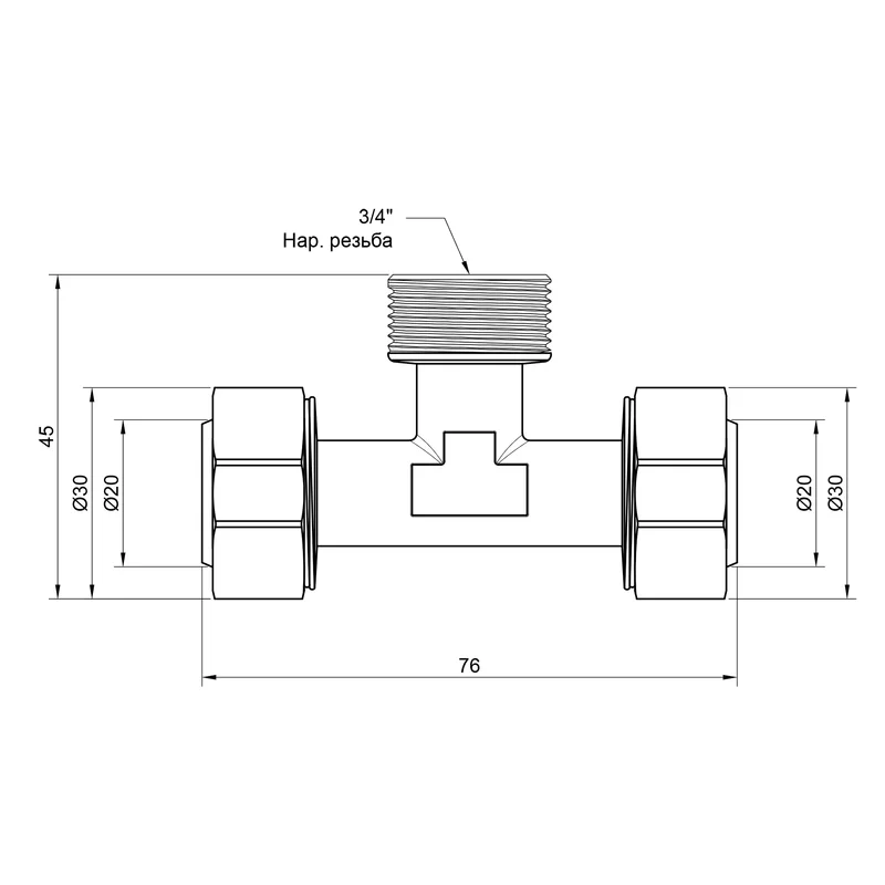 Трійник обтискний SD Plus 20х3/4"х20 ЗР SD160W202020