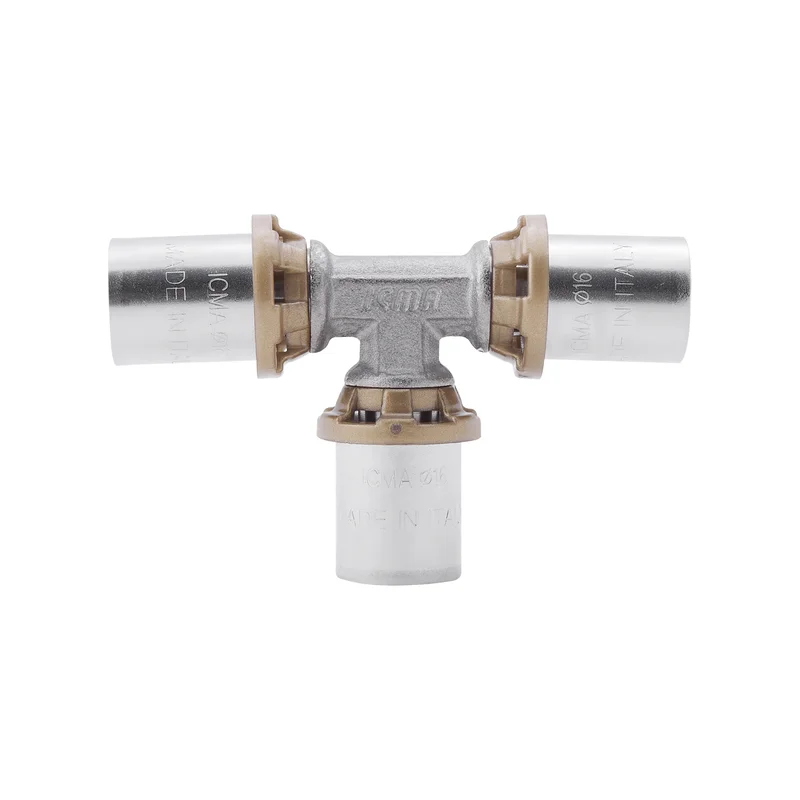 Прес-фітинг трійник Sempiter призначений для металопластикової труби для монтажу з радіальним пресуванням. Застосовується в системах водопостачання, опалення, і охолодження. Окремий прес на кожен діаметр труби стискає гільзу з нержавіючої сталі, яка надійно фіксує трубу на фітингу. Механічне з'єднання забезпечує спеціальний профіль фітинга і гільзи з нержавіючої сталі, які були розроблені спеціально для того, щоб пресування відбувалося трьома різними профілями.