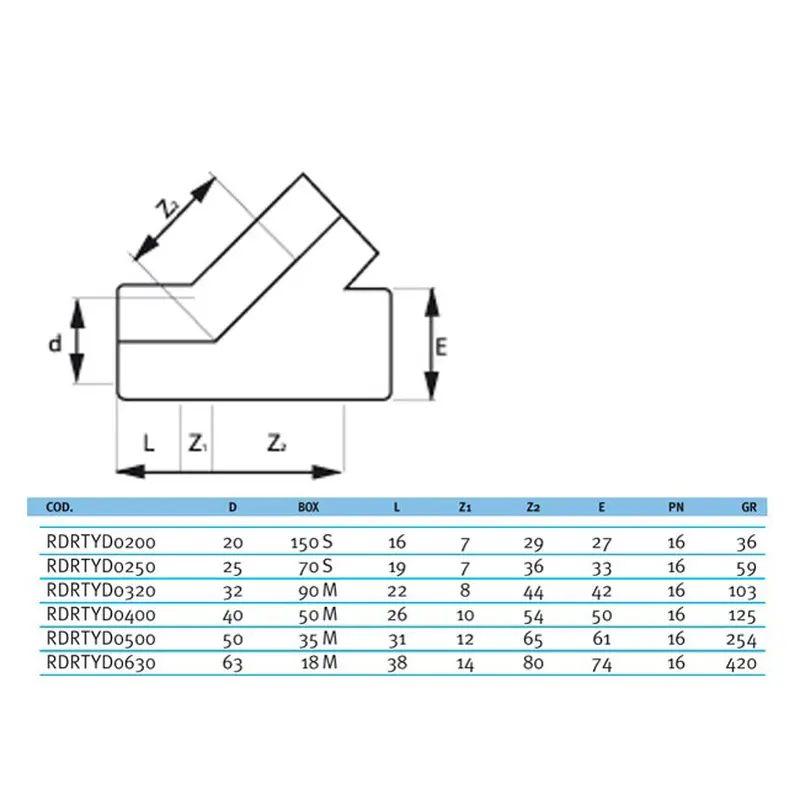 Трійник ПВХ Effast RDRTYD0630 45° клеєвий, d63 мм