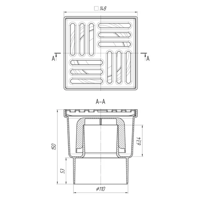Трап Анипласт TА1212 вертикальный, не регулируемый с нержавеющей решеткой 15 х 15, D 110