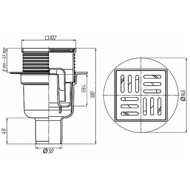 Трап Анипласт TА5704 вертикальный, регулируемый с пластиковой решеткой 10 х 10, D 50