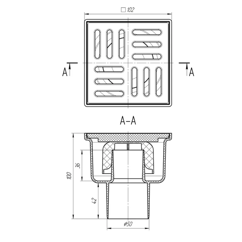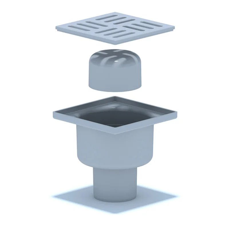 Трап для душу АНІ ПЛАСТ вертикальний нерегульований, з гідрозатвором, з решіткою із пластику 100*100 мм (WТА5204)
