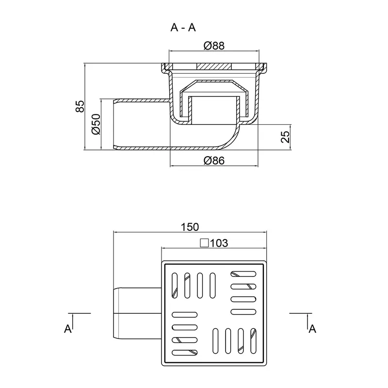 Горизонтальний трап Lidz (WHI) 60 07 T003 00 дозволяє організувати душову зону без бортів на рівні з підлогою. Така душова зона виглядає сучасно, пасуватиме ванній кімнаті в будь-якому стилі. Корпус трапа виконаний з якісного пластику сірого кольору. Дана модель виконана з квадратними гратами розміром 103х103 мм і має випускний отвір діаметром 50 мм. Мокрий закрив не дає неприємному запаху проникати в приміщення з каналізації по трубах.