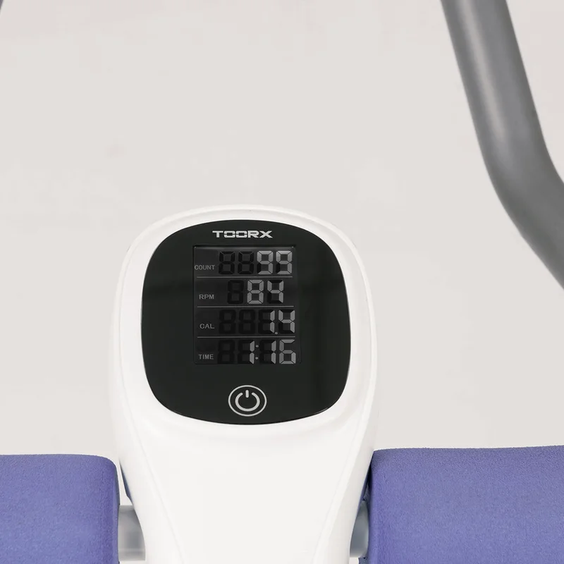 - Консоль із LCD-дисплеєм відображає час тренування, витрачені калорії, кількість рухів, кількість рухів за хвилину.