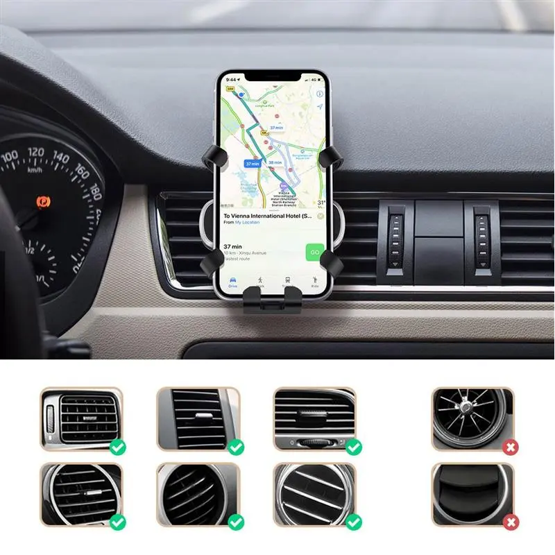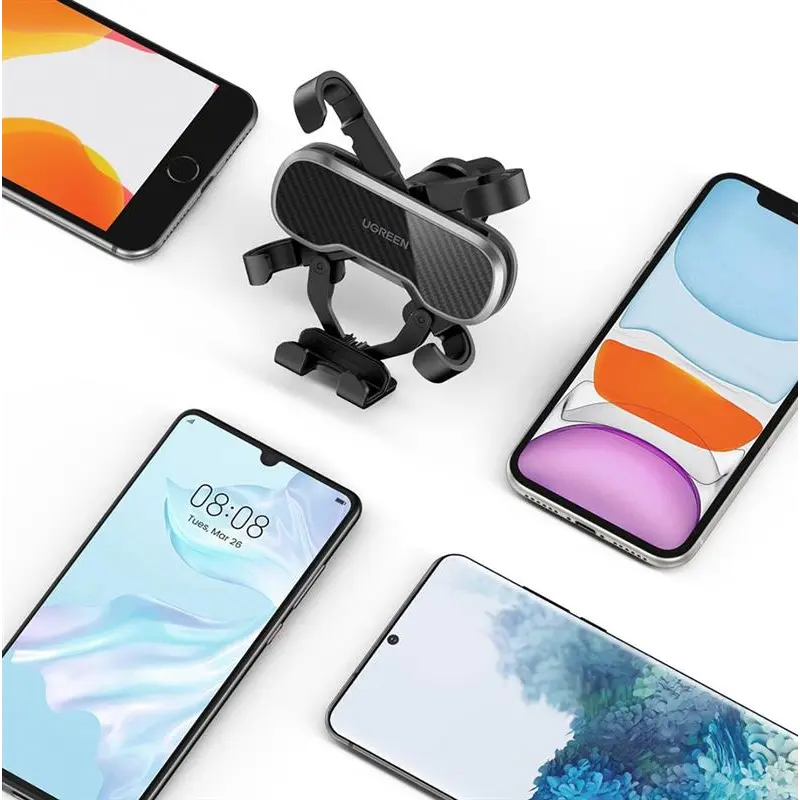 Автомобільний тримач для смартфона Ugreen LP228 (80871) – це необхідний для водіїв аксесуар, який кріпиться на вентиляційну решітку автомобіля та дозволяє за кермом автомобіля вільно спілкуватись, користуватись навігацією чи слухати музику з мобільного телефона. Просто покладіть свій смартфон у тримач, і під дією сили тяжіння він буде надійно утримуватись нижнім і боковими фіксаторами. Завдяки розсувному механізму тримач Ugreen LP228 підходить для мобільних пристроїв шириною від 6,5 до 8,0 см. Можливість повороту на 360 градусів дозволяє налаштувати оптимальний кут огляду. Нижній фіксатор тримача має виріз для підключення зарядного пристрою. Ви можете не хвилюватись, що подряпаєте вентиляційні решітки – виробник завбачливо обладнав кріплення тримача гумовими насадками.
