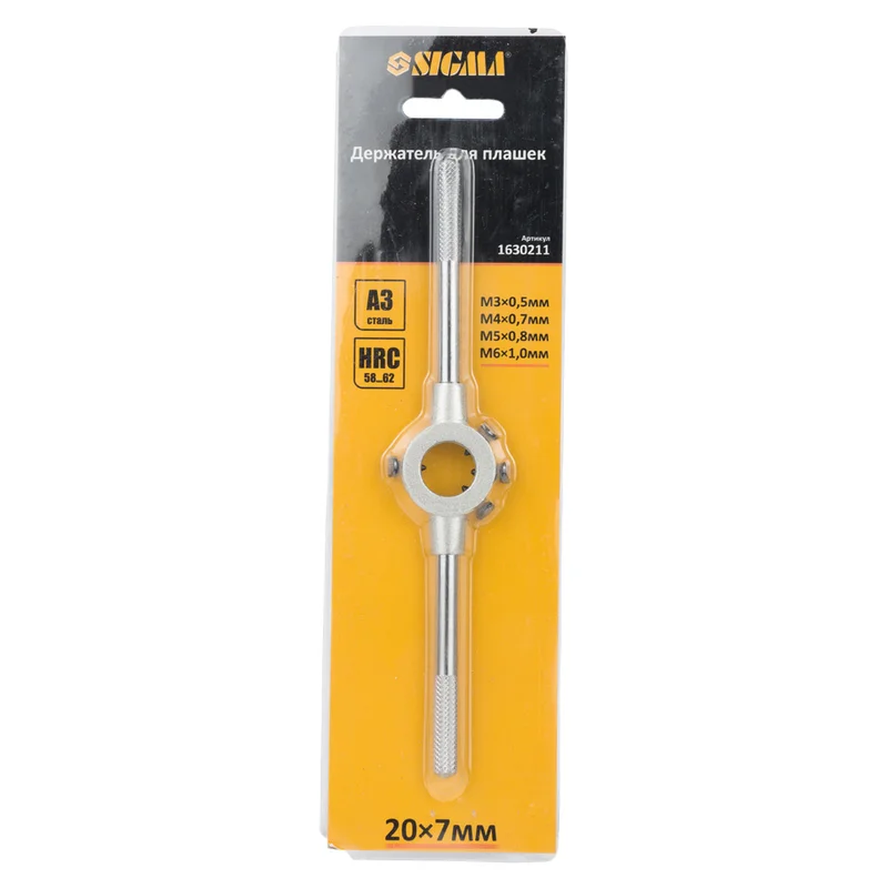Тримач для плашок 20×7мм SIGMA (1630211) призначений для фіксації резьбонарезного інструменту і подальшого нарізування різьблення.