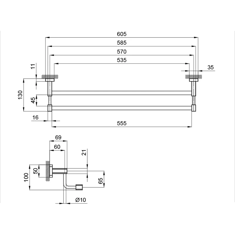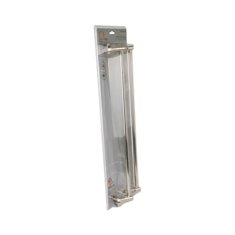Тримач для рушників Qtap Liberty ORO 1148 виконаний з латуні з золотою глянцевою поверхнею, яка легко миється та не піддається корозії. Тримач складається з кріплення й двох стрижнів, з'єднаних вигнутими деталями, довжиною 610 мм кожен, що дозволяє розмістити відразу чотири рушники або два банних. Прихований монтаж не порушує дизайну ванної кімнати й не псує обробку. На тримач нанесено фірмовий логотип виробника.