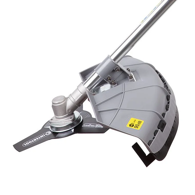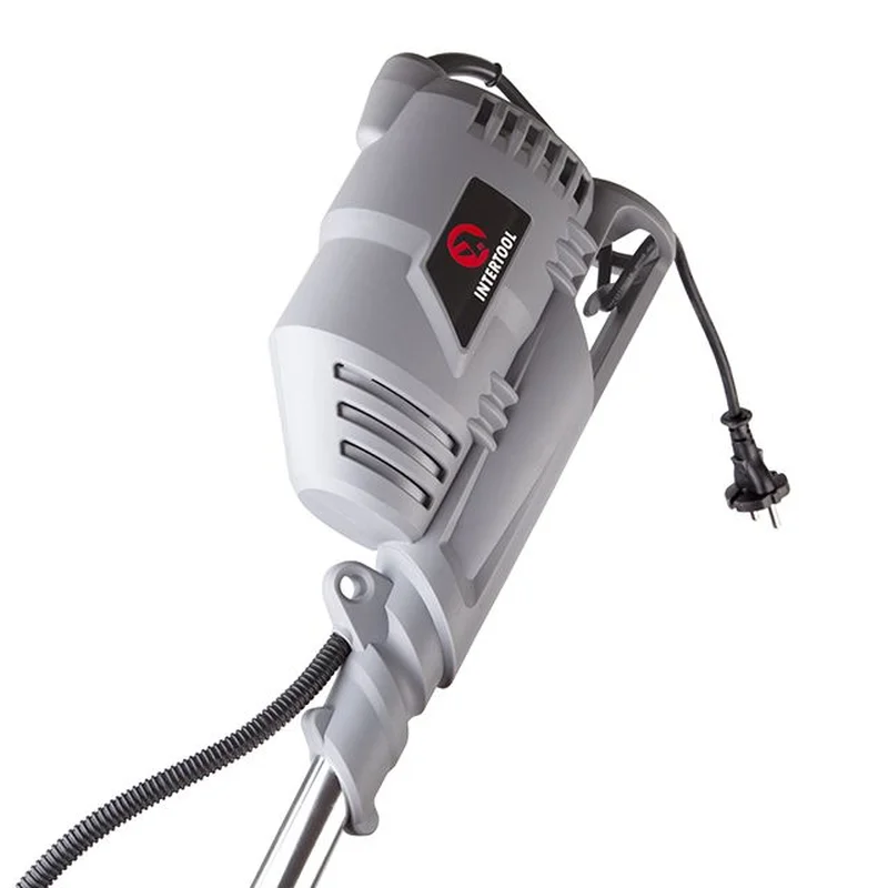 Тример електричний, 1400 Вт, 230 В, ~50 Гц, 7500 об/хв., плавний пуск, рем. привід, діаметр обертання диска/волосіні - 255/420 мм, котушка + 3-зубчастий ніж INTERTOOL DT-2258