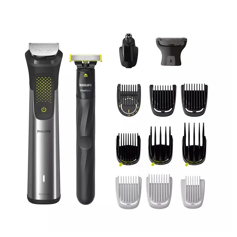 Регульована насадка для точного підстригання Регульована насадка для точного підстригання пропонує 11 налаштувань довжини в діапазоні 1–3 мм для рівномірного підстригання тієї довжини, що вам потрібна. Датчик адаптації потужності Тример, який пристосовується до вашої бороди, скануючи густоту бороди 125 разів на секунду й збільшуючи потужність саме тоді, коли це потрібно, аби впоратися з густим або довгим волоссям. Сталеві леза, що самозаточуються Леза тримера з нержавіючої сталі залишаються гострими, як нові, забезпечуючи тривалу роботу без змащування. Універсальний тример 15-в-1 з неймовірною точністю Цей універсальний тример з різними насадками пропонує 27 налаштувань довжини від 0,2 до 20 мм із точністю до 0,2 мм для рівномірного підстригання короткої та довгої бороди. Для моделювання ідеальної бороди точно підрівняйте краї лезом OneBlade. Двостороннє лезо голить в обох напрямках і захищає шкіру під час гоління щік, підборіддя та шиї. Легке підстригання волосся Завдяки насадкам тримера ви можете обирати довжину від 0,2 до 20 мм, щоб створити зачіску в домашніх умовах. Попрощайтеся з небажаним волоссям на тілі Голіться комфортно нижче шиї за допомогою нашої бритви для тіла. Унікальна система захисту шкіри захищає чутливі ділянки під час гоління з точністю до 0,5 мм. Ви також можете підрівняти волосся на тілі за допомогою двох змінних насадок. Тример для носа й вух, насадка для брів Тример для носа й вух швидко й безпечно видаляє небажане волосся. За допомогою спеціальної насадки для брів ви зможете легко підтримувати свої брови охайними та акуратними. OneBlade для створення чітких контурів і країв Лезо, що швидко рухається (6000 обертів на хвилину), впорається навіть із найдовшим волоссям, має ковзаюче покриття та закруглені кінчики для захисту шкіри, даючи вам змогу з комфортом укладати й голити бороду. Підголіть щоки, підборіддя і шию, щоб надати бороді точну форму. Тример працює чотири тижні після заряджання Потужний літій-іонний акумулятор забезпечує до 120 хвилин роботи з можливістю 5-хвилинного швидкого заряджання для тривалої експлуатації та максимальної потужності. Лезо OneBlade працює до 30 хвилин, тож у вас буде достатньо часу, щоб підрівняти й поголити бороду. Дізнавайтеся, коли потрібно заряджати Індикатор заряду акумулятора тримера дозволяє дізнаватися про стан його заряду. Завдяки цьому акумулятор ніколи не розрядиться в незручний момент. Водонепроникний для зручного використання та легкого очищення Цей універсальний тример є водонепроникним, що дозволяє використовувати його в душі та легко очищувати під краном. Ергономічний дизайн Висококласний тример з нержавіючої сталі та електростанок OneBlade легко тримати й зручно використовувати, завдяки ергономічній гумовій ручці, що забезпечує чудовий комфорт і контроль.