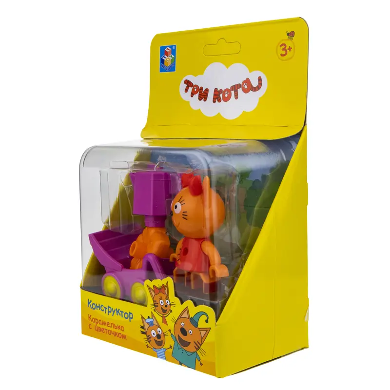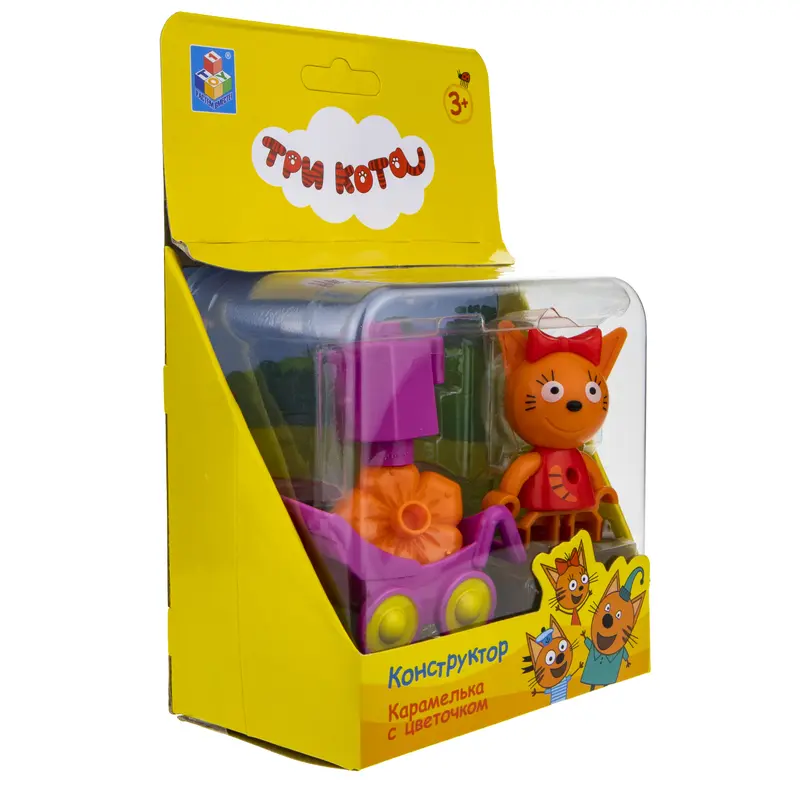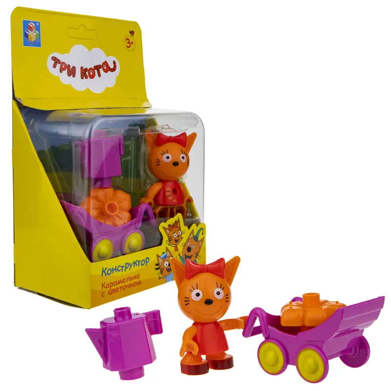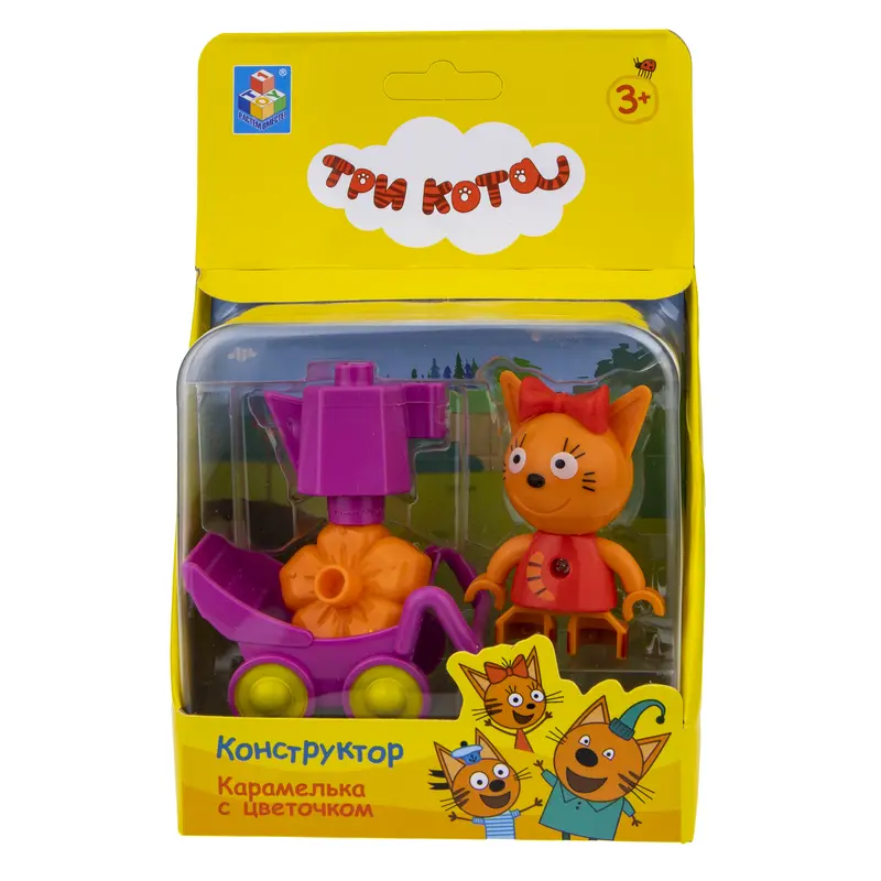Три кота - один із найпопулярніших мультфільмів останнього часу. Веселі руді кошенята Коржик, Компот та Карамелька, а також їх кумедні Мама з Папою сподобалися і дітям, і дорослим!Карамелька — головна улюблениця, адже вона наймолодша у дружній родині кошенят. Ігровий набір-конструктор "Карамелька з квіточкою" дозволить вигадувати багато цікавих історій та повторювати найяскравіші сцени з мультсеріалу. У набір входить фігурка Карамельки, яскравий візок, лійка та квіточка.Набір складається з великих деталей і виконаний із безпечного та міцного пластику. Підходить для дітей віком від 3 років.