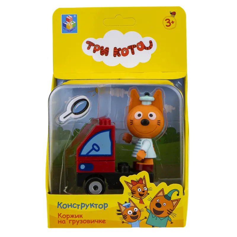 Веселі та яскраві іграшки котиків з мультфільму "Три кота" сподобаються всім любителям тварин! Разом із сім'єю добрих і кумедних кошенят можна вигадувати багато цікавих історій або відтворювати сцени з мультика, розвиваючи уяву, дрібну моторику та фантазію.Коржик - найактивніше і сміливіше кошеня. Він любить рухливі ігри, завжди голосно розмовляє та швидко пересувається. Коржик вміє водити вантажівку, тому завжди приходить на допомогу своїм друзям. В ігровий набір входять великі елементи для складання вантажівки та фігурка Коржика.Набір складається з великих деталей і виконаний із безпечного та міцного пластику. Підходить для дітей віком від 3 років.