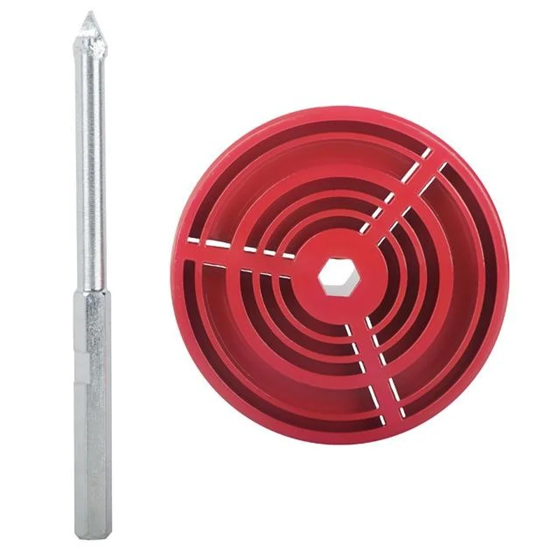 Універсальний тримач підходить до кільцевих коронок різного діаметру (33, 43, 53, 63, 67, 73, 83 мм), йде в комплекті з центруючим свердлом.