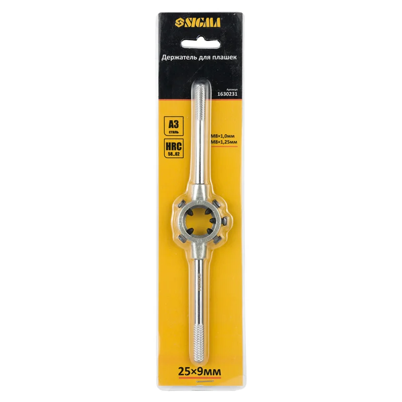 Тримач для плашок 25×9мм SIGMA (1630231) призначений для фіксації резьбонарезного інструменту і подальшого нарізування різьблення.