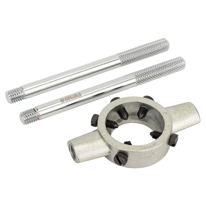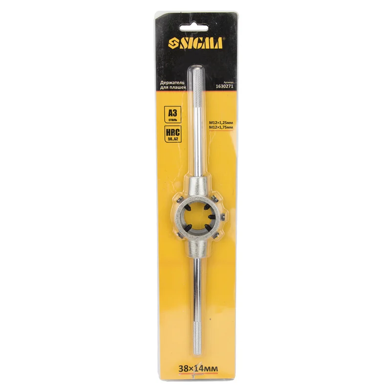 Тримач для плашок 38×14мм SIGMA (1630271) призначений для фіксації резьбонарезного інструменту і подальшого нарізування різьблення.