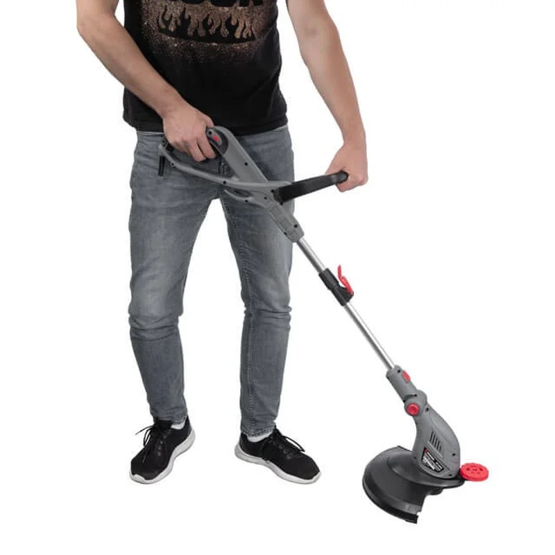 Головка тримера має регулятор положення, ви зможете повернути та зафіксувати її у зручному положенні для роботи у важкодоступних місцях. Штанга телескопічна та може регулюватися під зріст оператора за допомогою фіксаторів.
