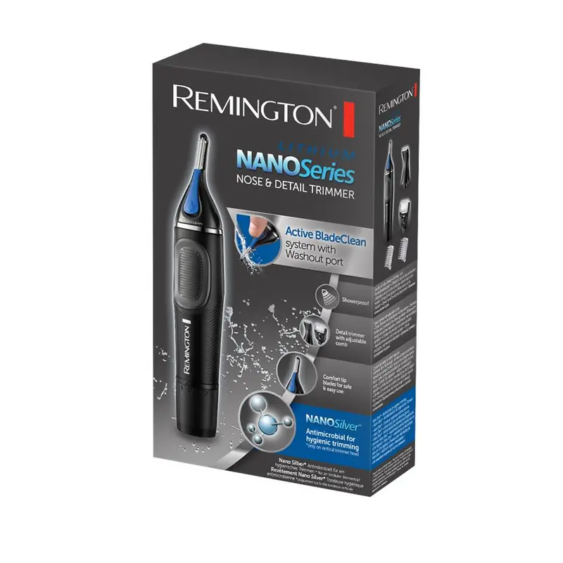 Тример REMINGTON NE3870 - чудовий інструмент для видалення небажаного волосся. Продумана система очищення забезпечує гігієнічне просте обслуговування, активно протидіючи бактеріям, а правильно розташовані леза не дозволять вам порізатися під час стрижки. Система BladeClean для легкої очисти (отвір для промивання під водою) Антибактеріальне покриття з нано-сріблом Двосторонній, вертикальний триммер Регульована насадка-гребінь (1-5мм) для детального використання Зручні леза для безпечного і легкого використання Вертикальний триммер для стрижки брів Водонепроникний Ергономічна ручка Літієва батарейка в комплекті