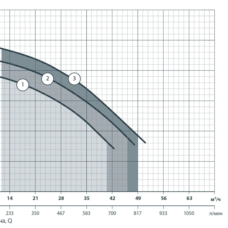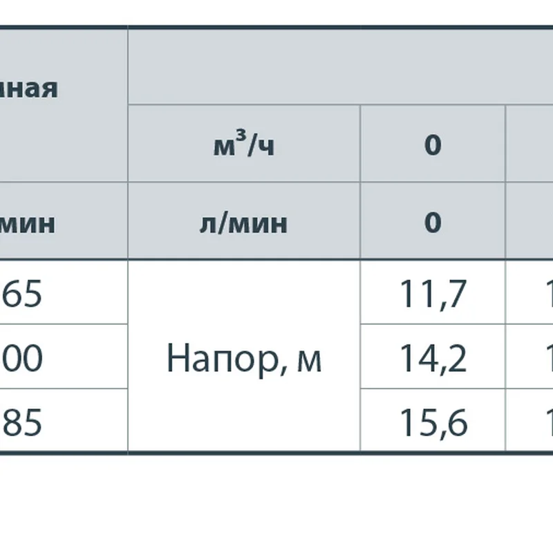 - Максимальная объемная подача: 59,1 м³/ч (985 л/мин)