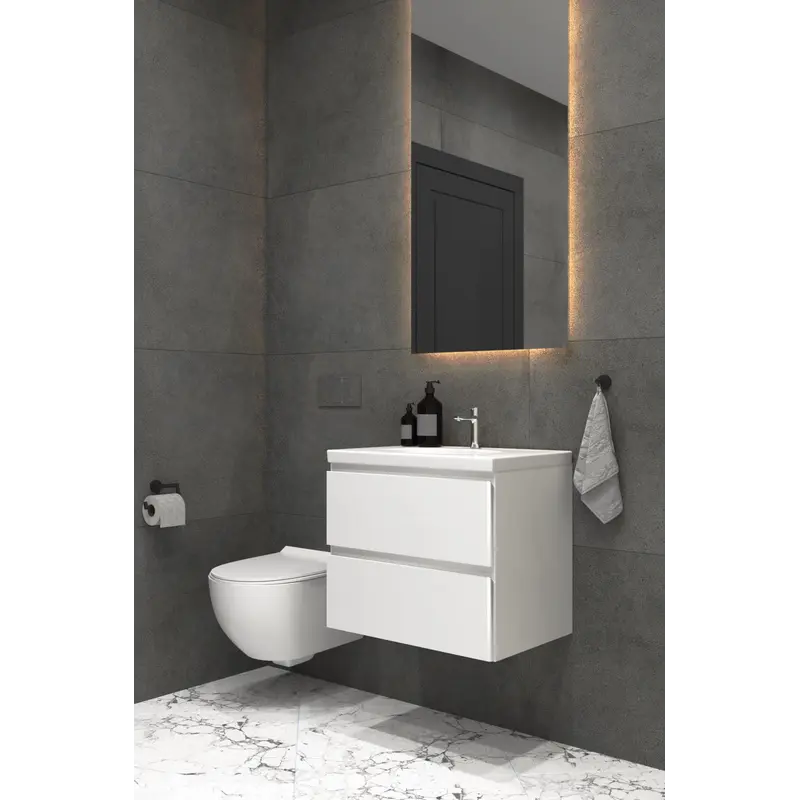 Колекція меблів TREND – консольна тумба з шухлядами плавного типу закривання. Умивальник - литий мармур. Можлива ширина тумби: 60 / 80 / 90 / 100 см. Колір білий.