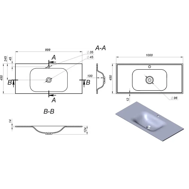 Тумба підвісна біла Trend з меблевим умивальником 100 cм (202210TR-01000)