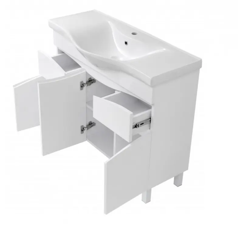 Тумба на ніжках "Марсель 100" з умивальником "Basic-100", біла для ванної кімнати