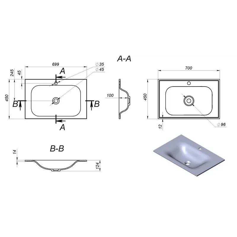 Тумба підлогова EDGE NEW 700 (білий) з умивальником