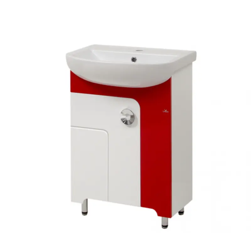 Тумба підлогова "Еліза 55" з умивальником "Артеко 55", червона для ванної кімнати