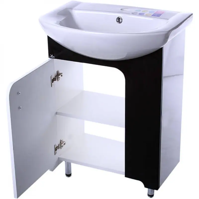Тумба підлогова "Еліза 55" з умивальником "Артеко 55", чорна для ванної кімнати