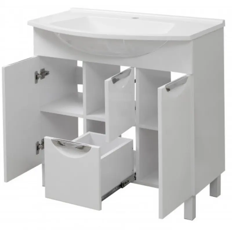 Тумба підлогова "Лаура 85" з умивальником "Вега 85", біла для ванної кімнати
