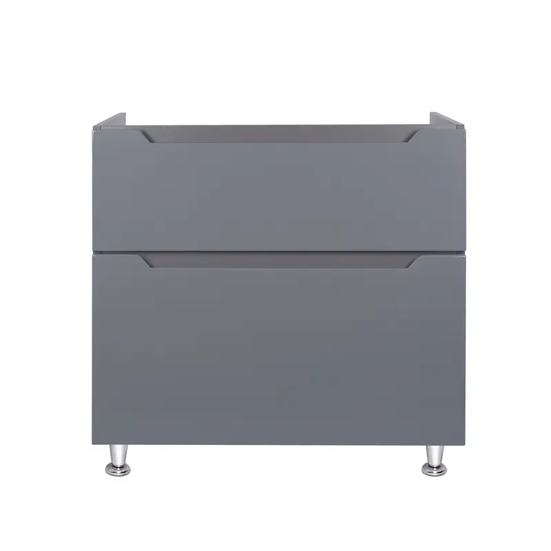 Підлогова тумба Qtap Scorpio 810х825х500 Graphite QT1473TNВ802NG виконана в лаконічному стилі, який доповнить дизайн будь-якої ванної кімнати. Корпус тумби сірого кольору виготовлений з ЛДСП, фасадна частина - з МДФ з глянцевим покриттям. Оснащена двома висувними ящиками з механізмом доводчика. У комплекті чотири стійкі металеві ніжки.