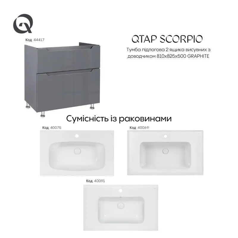 Тумба підлогова Qtap Scorpio 800х825х500 GRAPHITE QT1473TNВ802NG