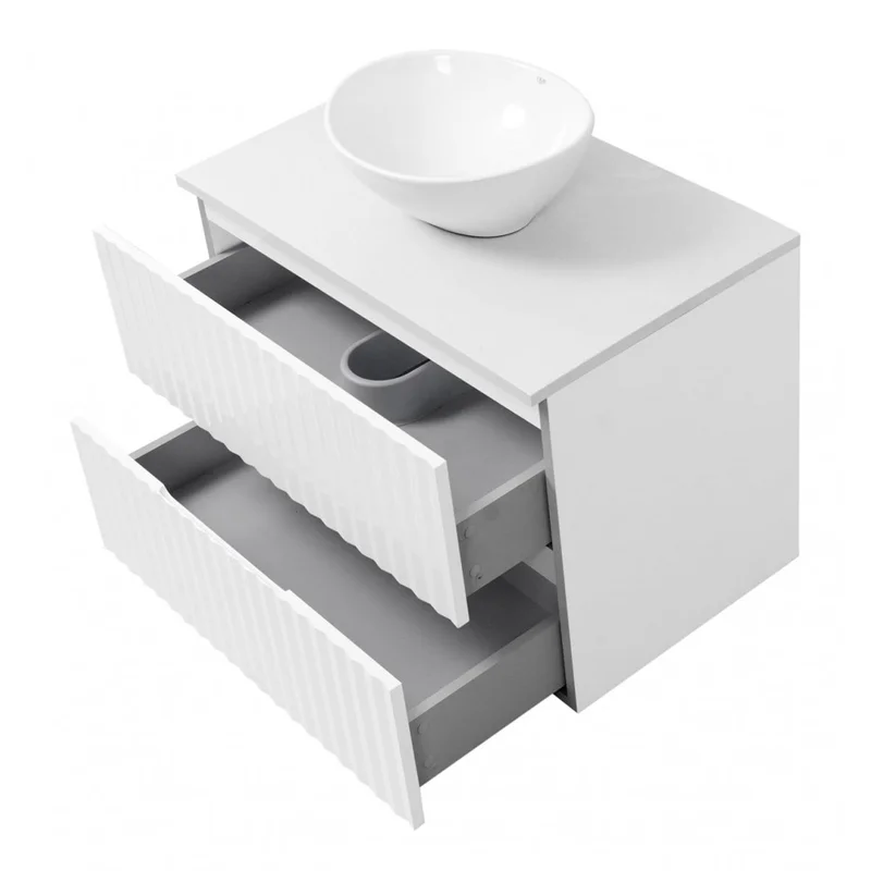 Тумба підвісна "Marble" 80 зі стільницею та умивальником "Овал", біла для ванної кімнати