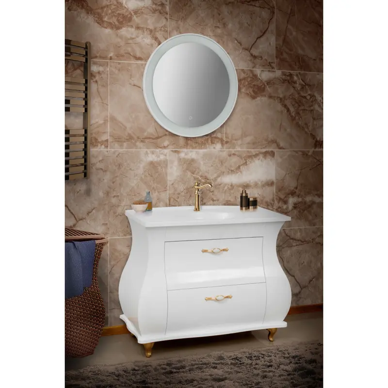 Тумба підлогова "Валенсія" з умивальником "Романс 100", бежева із золотою/срібною патиною для ванної кімнати