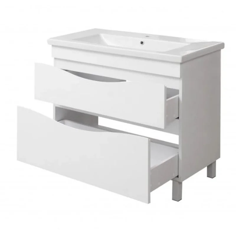 Тумба Smile 100 с умывальником COMO 100 белая, напольная, на ножках