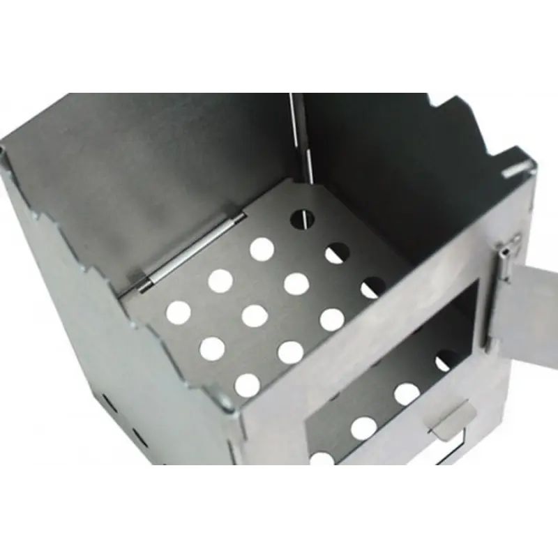 Туристична міні-піч "ЩЕПОЧНИЦЯ" - це спеціальний компактний пристрій, призначений для простого, зручного та ефективного приготування їжі на відкритому повітрі. Металевий короб, що складається з двох бічних, задньої та передньої стінок і перфорованого дна. Всі елементи міні-печі між собою з'єднуються рухомо за допомогою спеціальних петель і дротяних кріплень. Після повної збірки виходить досить жорстка конструкція.