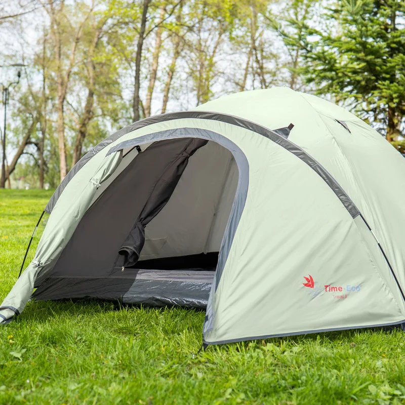 Якісний та практичний тримісний туристичний намет Time Eco Travel-3 стане у пригоді любителям туризму та кемпінгу, а також усім, хто хоче облаштувати ночівлю чи комфортне місце під накриттям у процесі риболовлі, походу, полювання та інших видів відпочинку на природі.