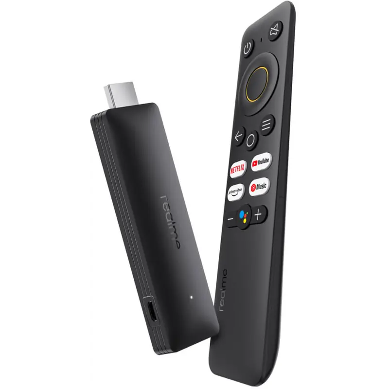 TV Stick Realme 4K з інтерфейсом Google TV, а також із вбудованим магазином програм Play Store та технологією Chromecast. Керувати realme 4K TV Stick можна за допомогою комплектного пульта. Він має кнопку виклику Google Assistant, а також кнопки швидкого запуску Netflix, Amazon Prime Video, YouTube та YouTube Music. За продуктивність пристрою відповідає процесор із чотирма ядрами Cortex-A35. Чіп працює в парі з 2 ГБ ОЗП та накопичувачем на 8 ГБ. Гаджет підтримує відтворення контенту HDR10+ з максимальною роздільною здатністю 4K 60fps. Realme 4K Google TV підтримує HDMI 2.1 CEC, що означає спільне використання пульта для керування як самим пристроєм, так і 4K телевізором. Підтримка Wi-Fi 5 ГГц. Realme 4K Google TV можна під’єднати навушники через Bluetooth 5.0 або інші периферійні пристрої, наприклад мишу та клавіатуру. Інтерфейс Google TV (Android 11.0) Модель: realme 4k Smart Google TV Stick Глобальна версія ОЗП ПЗП: 2 ГБ 8 Гб Процесор: чотириядерний ARM Cortex A35 (Amlogic S905Y4 Quad-core 2.0GHz) Графічний процесор: двоядерний Підключення: WIFI; Bluetooth5.0 (Bluetooth Голосове керування) Характеристики: 4Kp60; HDR10; HDMI 2.1 підтримка; Google Assistant Комплектація: ТВ-приставка realme * 1 пульт дистанційного керування * 1 Посібник користувача * 1 HDMI подовжувач * 1 USB кабель живлення * 1